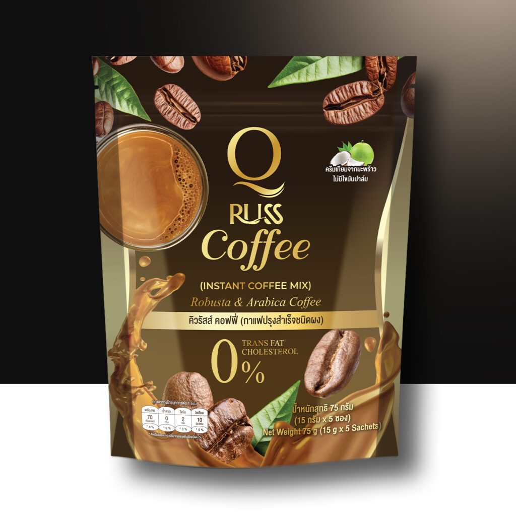 คิว รัสส์ คอฟฟี่ ขนาดสินค้า : 15 กรัม X 5 ซอง