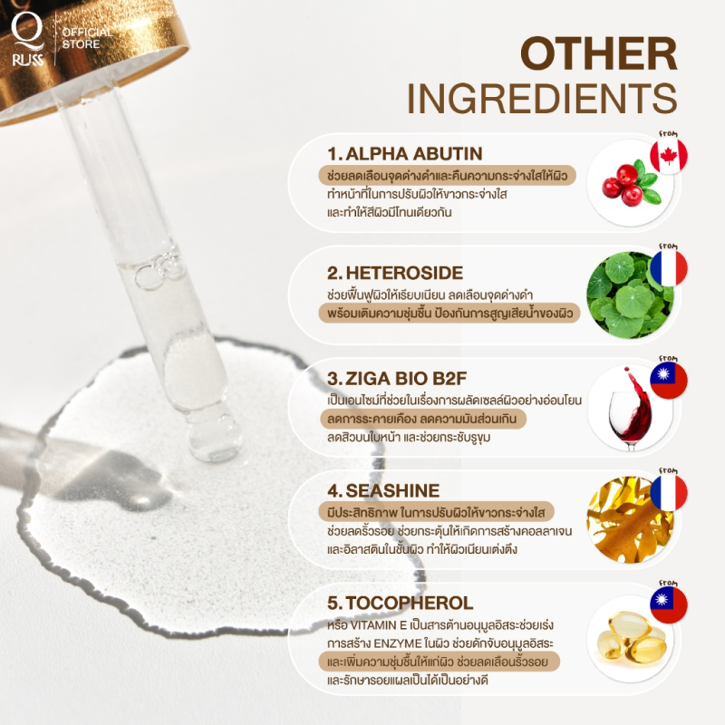 ช่วยเรื่องฝ้า กระ ริ้วรอย จุดด่างดำโดยเฉพาะต่อต้านอนุมูลอิสระ เสริมสร้างคอลลาเจนให้กับผิว